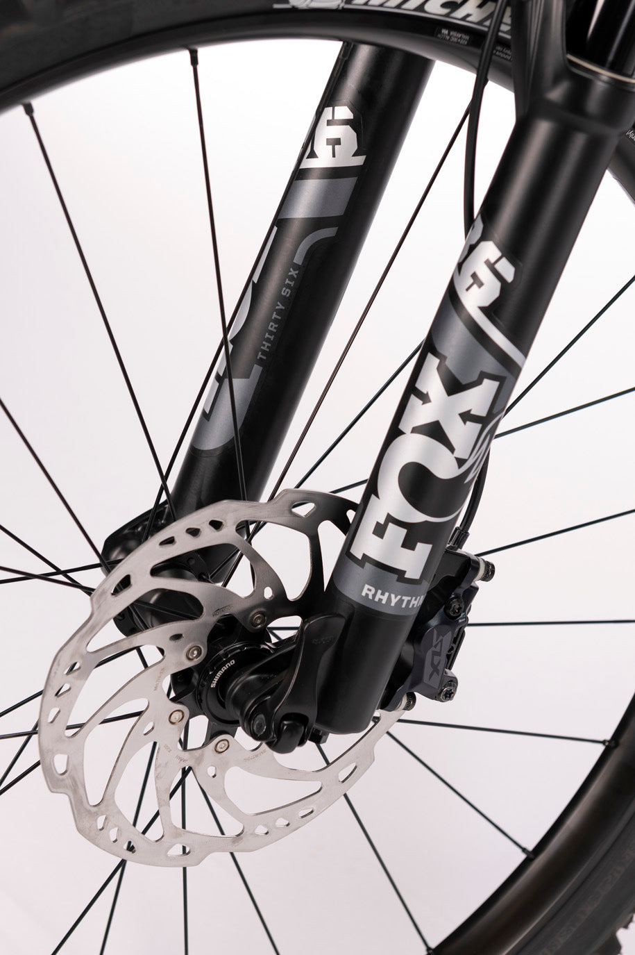 - Fox 36 Performance Elite suspension fork with 150 mm of travel