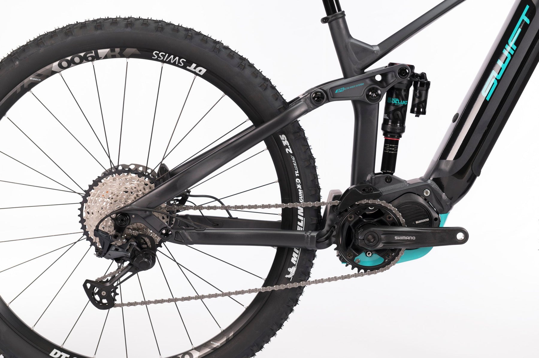The Drift-E Evo is assembled with the 12 speed Shimano SLX groupset, DT Swiss Spline H1900 wheels, with tubeless 30mm rims, specific to E-MTB and boost axles. This is the perfect bike for you to fulfill your dreams of reaching the top of the hills without using up all your strength. You can then ride down the trails where only the perfect integration between cyclist and bike brings a huge smile on each and every face!