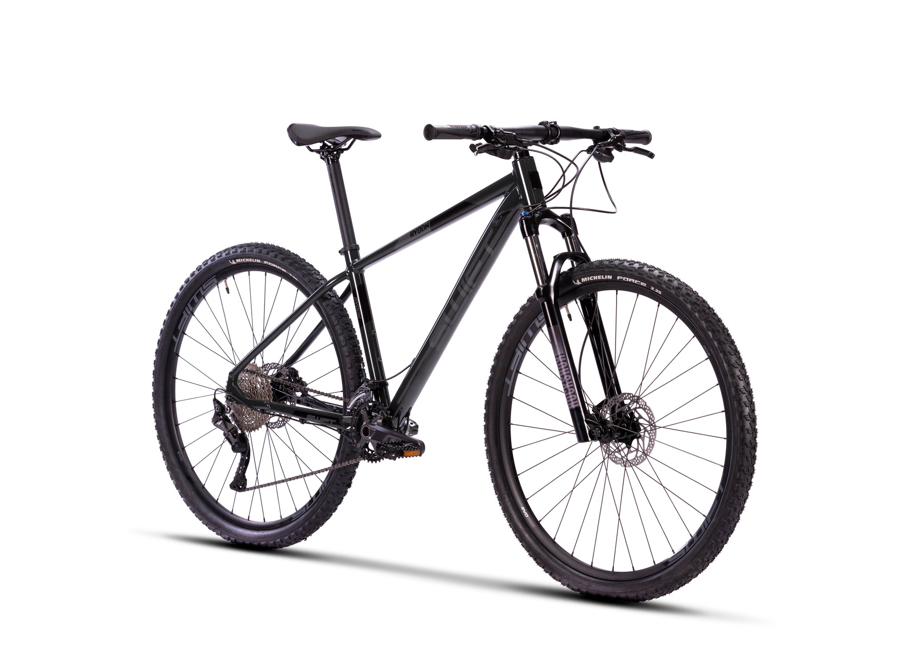 The hydraulic braking system is also provided by Shimano, giving you more braking sensitivity and the tires are 2.25 wide Michelin Force’s, fitted in 29’’ wheels.